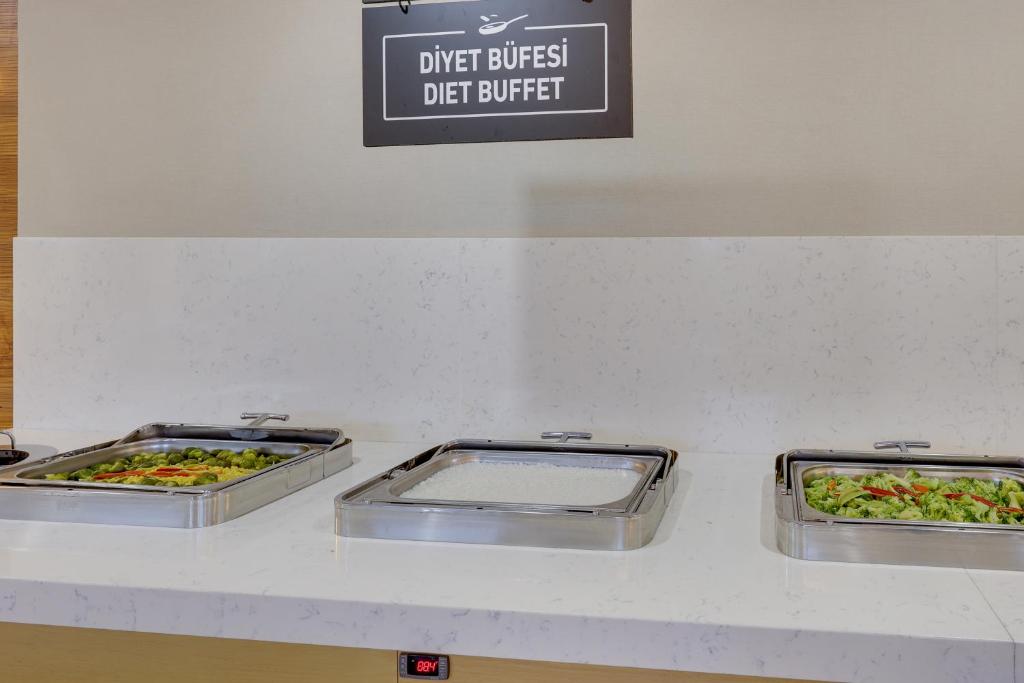 رستوران اصلی: وعدههای صبحانه، ناهار و شام بهصورت بوفه باز ارائه میشود. انواع غذاهای ترکی، مدیترانهای و بینالمللی با کیفیتی عالی سرو میشوند.