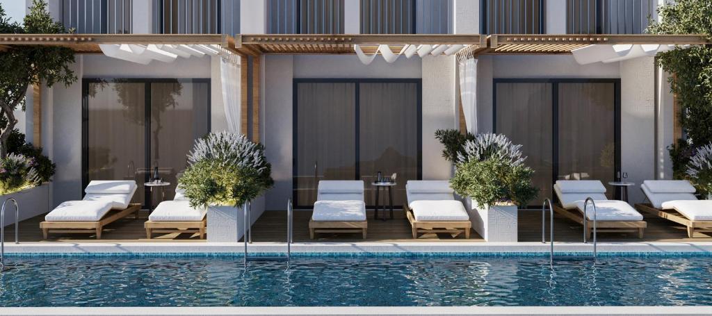 استخر روباز: فضایی بزرگ با صندلیهای آفتابگیر برای شنا یا استراحت در هوای مدیترانهای.