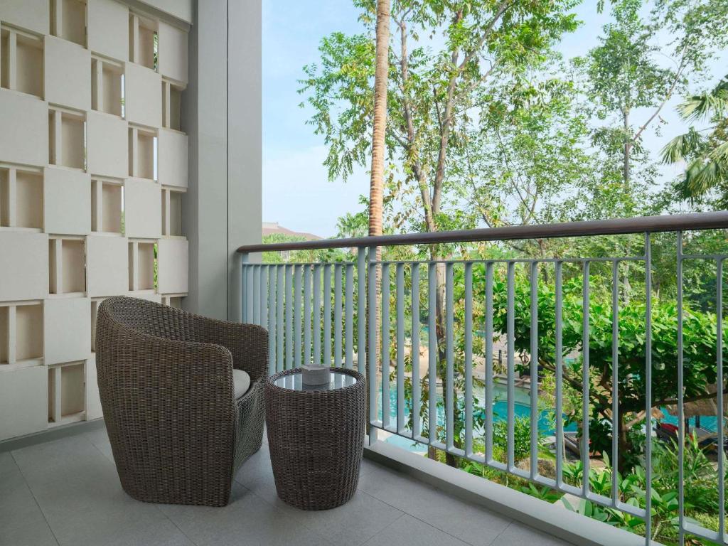 اتاقهای Mövenpick Resort در واقع نسخهای آرامتر و لوکستر از معماری بالیاند. استفاده از چوب طبیعی، نورهای زرد ملایم، پنجرههای بزرگ و تراسهایی با منظره باغ یا استخر باعث شده یک فضای نرم و متعادل شکل بگیرد.