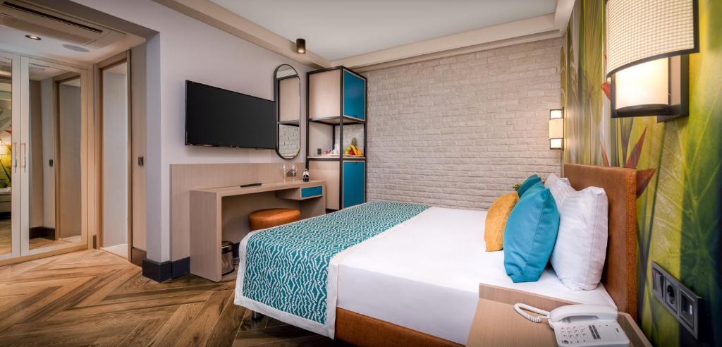 رستوران اصلی: وعدههای صبحانه، ناهار و شام بهصورت بوفه با انواع غذاهای ترکی، مدیترانهای و بینالمللی سرو میشوند. تنوع سالادها، دسرها و نوشیدنیها چشمگیر است.