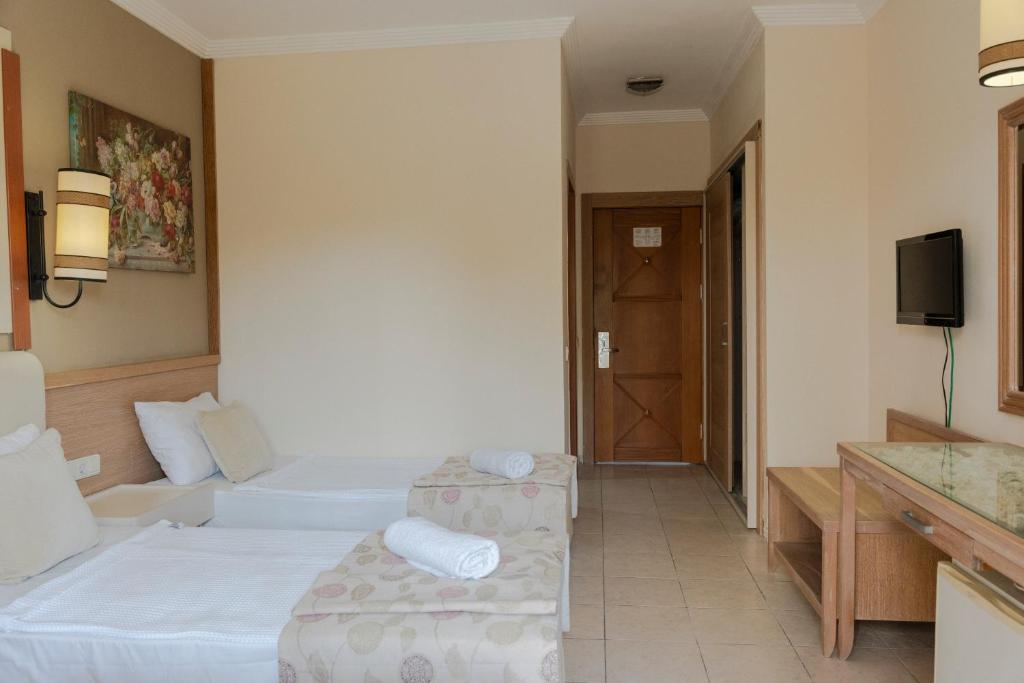 تمامی اتاقها به امکاناتی نظیر تهویه مطبوع، تلویزیون ماهوارهای، مینیبار، صندوق امانات، حمام اختصاصی با دوش و لوازم بهداشتی مجهز هستند. بالکن اختصاصی در بیشتر اتاقها وجود دارد و چشمانداز آن میتواند رو به باغ، استخر یا دریا باشد. گرچه دکوراسیون اتاقها ساده است، اما تمیزی و راحتی آنها نقطه قوت محسوب میشود.