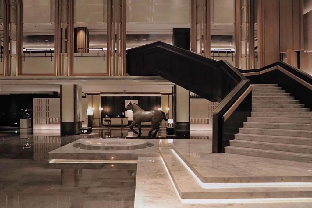 ورود به لابی هتل شبیه ورود به کاخی مدرن است. سقفهای بلند، لوسترهای طلایی، ستونهای سنگی صیقلی و کف مرمرین سفید فضایی باشکوه و سلطنتی خلق کردهاند. طراحی لابی ترکیبی از المانهای سنتی چینی (مثل نقوش طلایی و استفاده از رنگ قرمز و مشکی) و سبک اروپایی کلاسیک است؛ فضایی که بهطور خاص حس «لوکس بودن» را منتقل میکند.