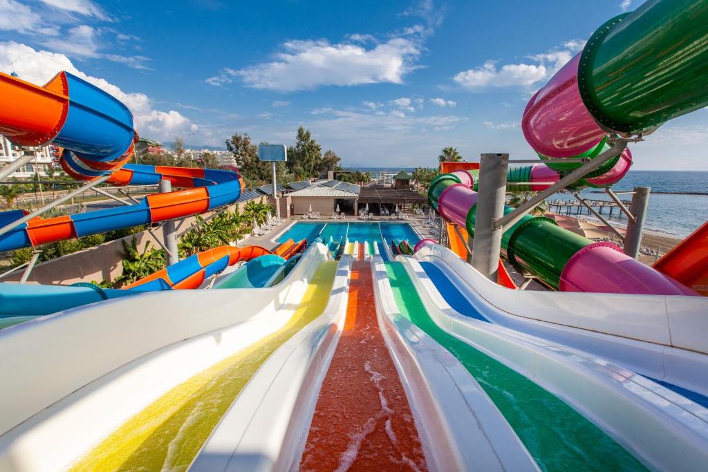 پارک آبی با سرسرههای متنوع که برای کودکان و بزرگسالان جذاب است.