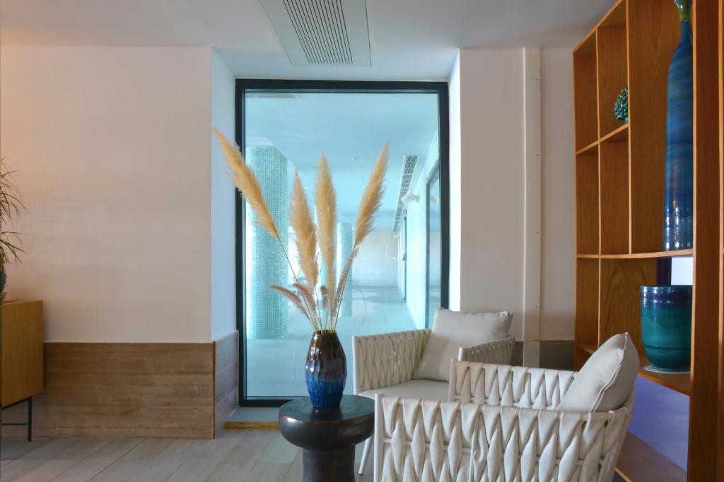 لابی مجلل با سقفهای بلند، نور طبیعی فراوان و پنجرههای بزرگ رو به دریا.