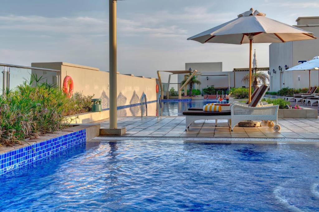 استخر روباز روی بام: با منظرهای جذاب از برجهای اطراف؛ فضایی عالی برای استراحت پس از یک روز پرهیاهو.