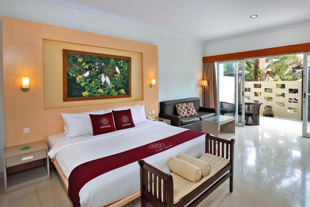 Puri Saron Hotel Seminyak از آن هتلهایی است که با معماری کلاسیک بالیایی، باغهای سرسبز و دسترسی مستقیم به ساحل، تجربهای آرام، اصیل و پر از حس و حال گرم استوایی ارائه میدهد.