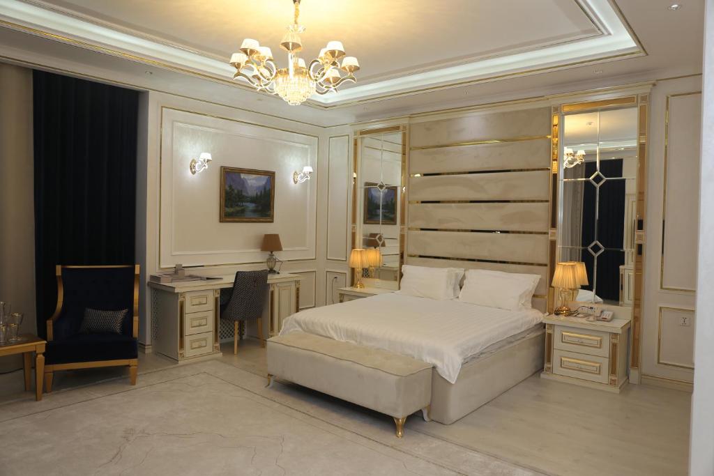 هتل Safo Dushanbe طیف متنوعی از اتاقها را ارائه میدهد که از اتاقهای استاندارد گرفته تا سوئیتهای خانوادگی را شامل میشود. دکوراسیون اتاقها ساده اما هوشمندانه طراحی شده است؛ ترکیبی از رنگهای کرم، قهوهای و طلایی که فضایی آرام و مناسب برای استراحت فراهم میکند. نور طبیعی از پنجرههای بزرگ به داخل میتابد و پردههای ضخیم نیز برای کنترل نور و حفظ حریم خصوصی تعبیه شدهاند.