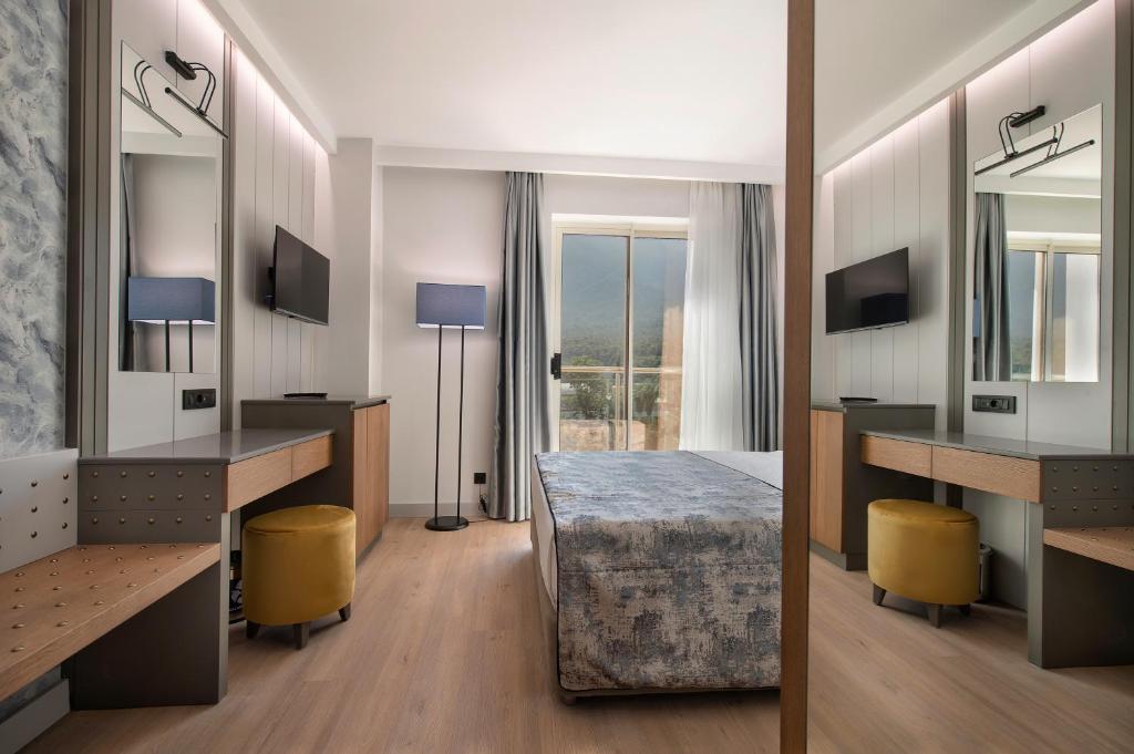امکانات تمامی اتاقها شامل تهویه مطبوع، تلویزیون LCD، مینیبار (شارژ روزانه)، اینترنت بیسیم، صندوق امانات، سرویس بهداشتی مدرن، سشوار و بالکن اختصاصی است. برخی اتاقها چشماندازی خیرهکننده از دریای مدیترانه دارند که اقامت را لذتبخشتر میکند.